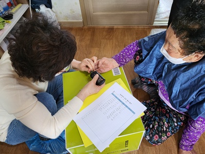 2022년 4월 노인공동생활가정 보금자리사업 돌산 작금경로당 어르신께 건강증진(혈압,혈당,체온체크)서비스 진행하였습니다.