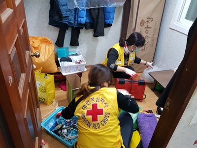 재가노인서비스에서는 대한적십자사`디딤돌 봉사단`과 연계한 사례지원 어르신의 주거환경개선서비스를 진행하였습니다.