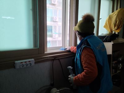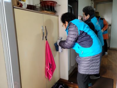 코로나19 상황으로 인해 경로당 내·외부 환경정리와 알콜 소독 활동을 하고 있습니다.