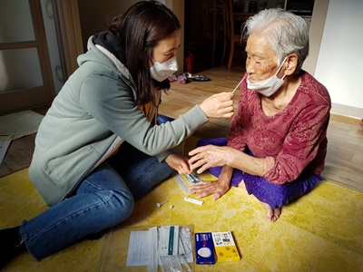 기초건강측정과 신속항원자가키트를 이용한 코로나검사를 진행하였으며 모두 음성으로 확인되었습니다.