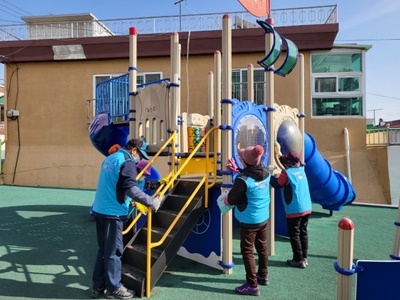 노인사회활동지원사업 생활체육시설소독 사업단 활동모습입니다.