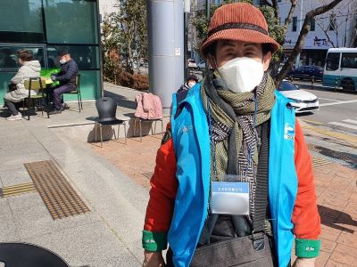 활동조끼와 명찰을 착용하고 활동하시도록 안내를 드리자 그 자리에서 입어보시며 활동에 대한 의지를 다지셨습니다.