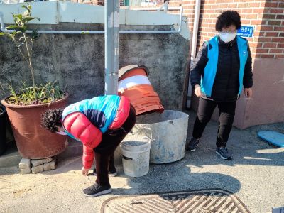 코로나19 오미크론 변이의 확산으로 경로당 출입이 어려운 수요처는 마스크 착용 등 기본방역수칙을 준수하며 경로당 주변 환경정리를 합니다.