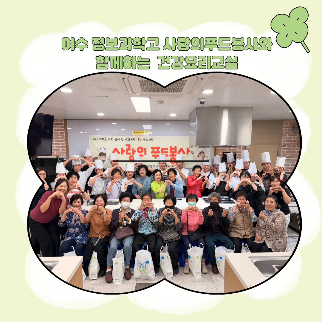 10월 15일(수) 여수정보과학고 ‘사랑의 푸드봉사’ 학생들과 함께 경로당 어르신들을 모시고 맛있는 '찜닭 만들기' 요리 체험을 진행했습니다.
