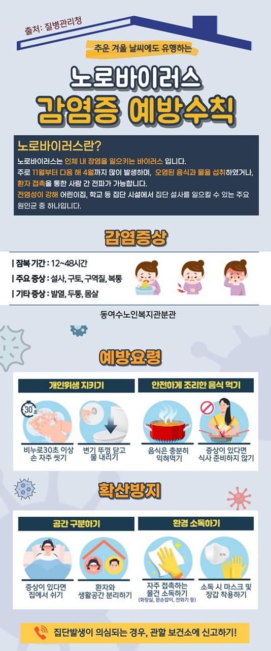 겨울철 유행하는 노로바이러스, 올바른 손 씻기와 안전한 음식섭취로 예방하세요!